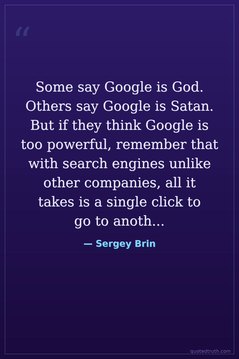 Some say Google is God. Others say Google is Satan. But if they think Google is too powerful, remember that with search engines unlike other companies, all it takes is a single click to go to another search engine.
