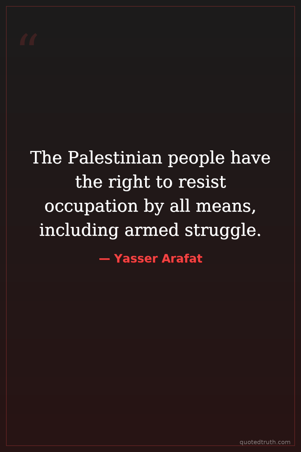 The Palestinian people have the right to resist occupation by all means, including armed struggle.