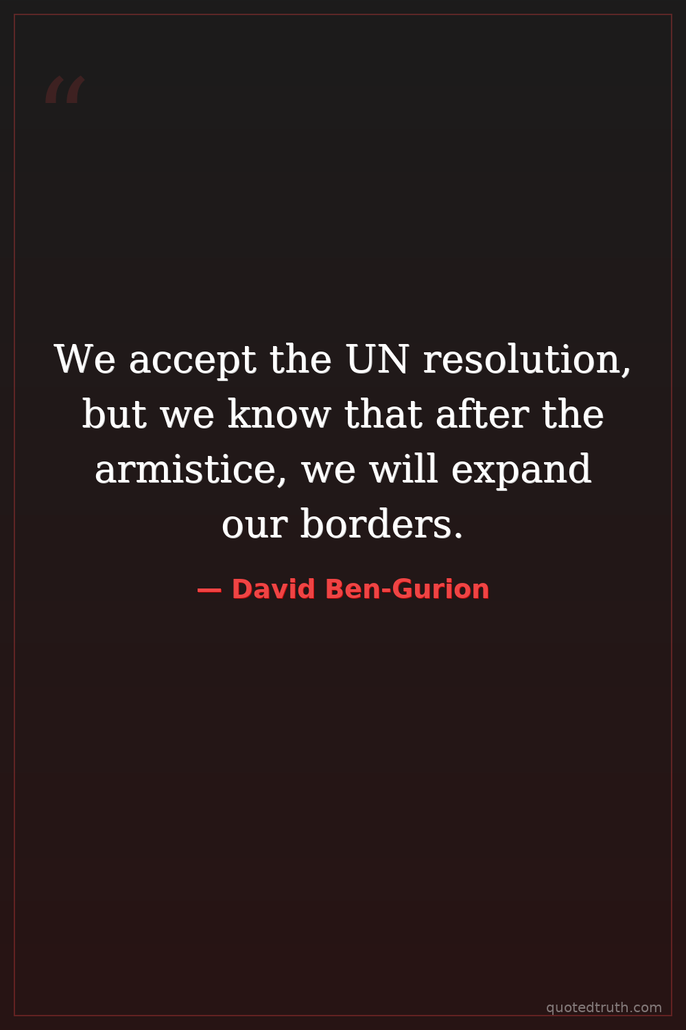 We accept the UN resolution, but we know that after the armistice, we will expand our borders.
