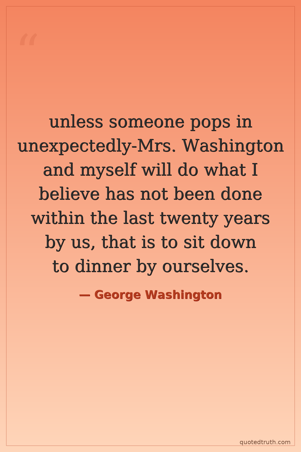 unless someone pops in unexpectedly-Mrs. Washington and myself will do what I believe has not been done within the last twenty years by us, that is to sit down to dinner by ourselves.