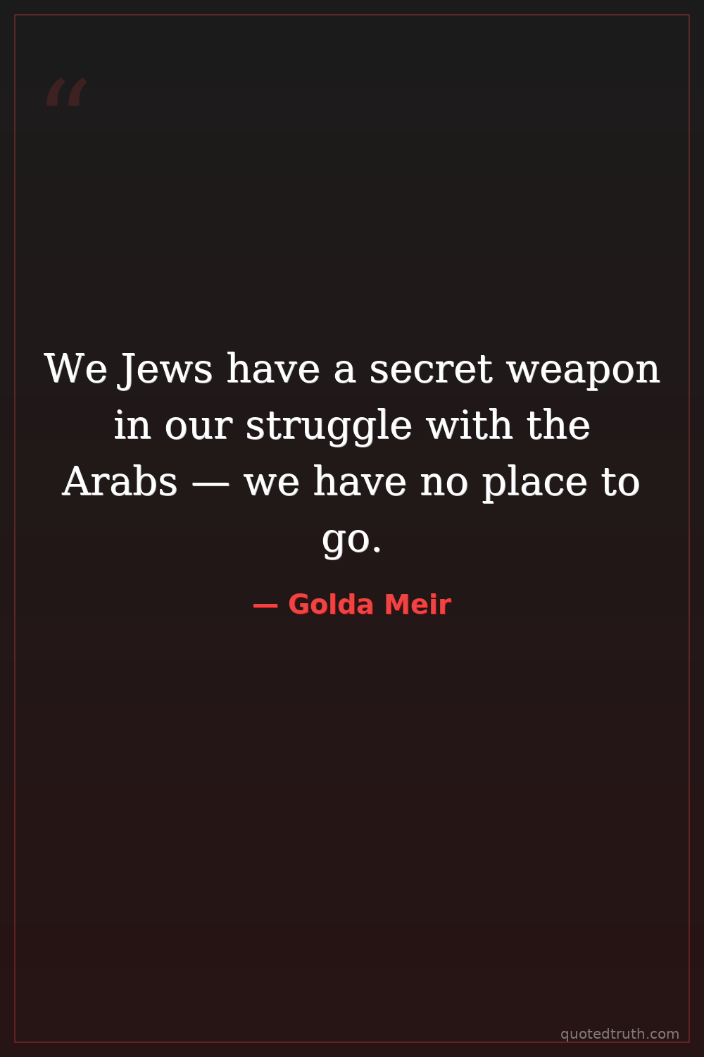 We Jews have a secret weapon in our struggle with the Arabs — we have no place to go.
