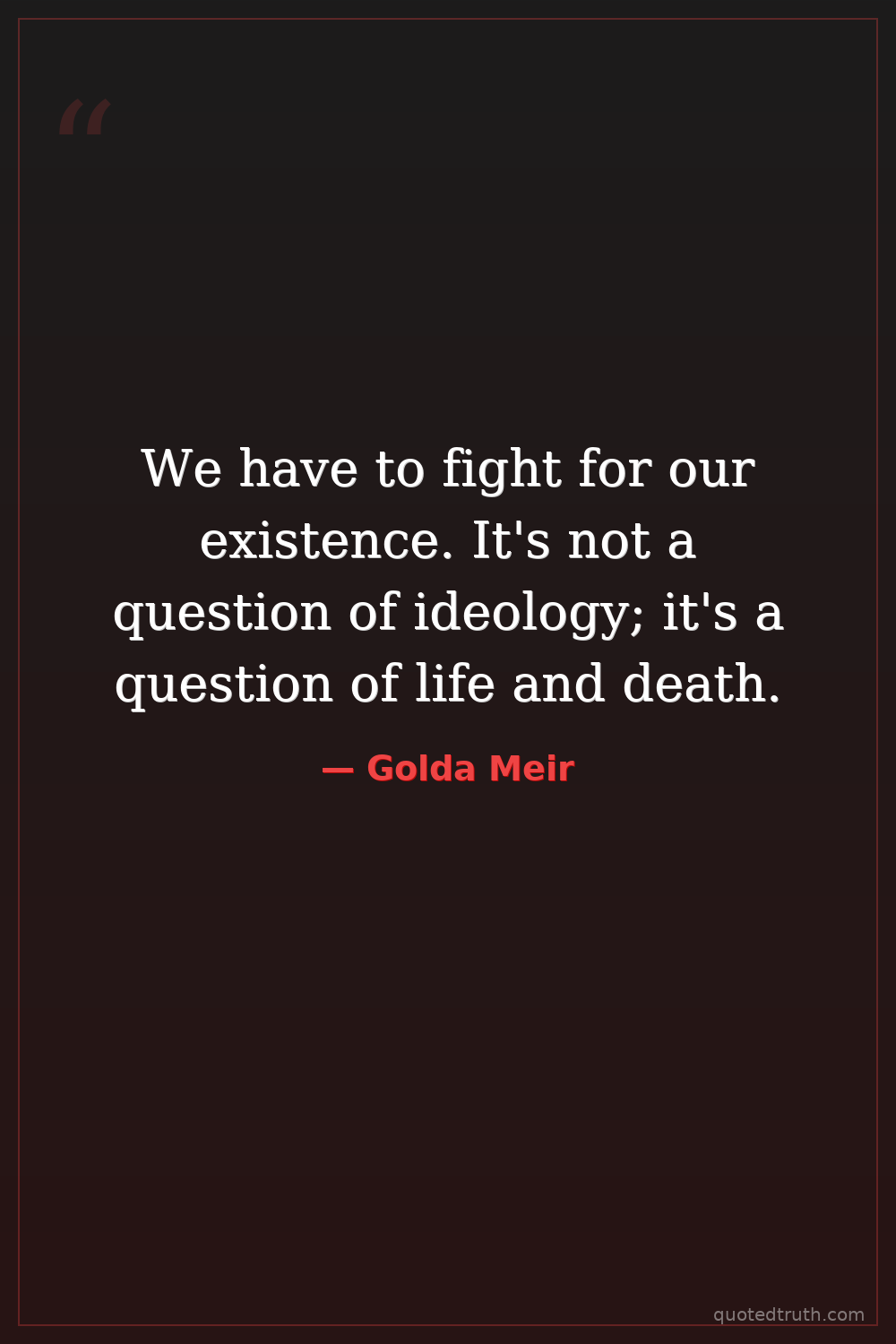 We have to fight for our existence. It's not a question of ideology; it's a question of life and death.