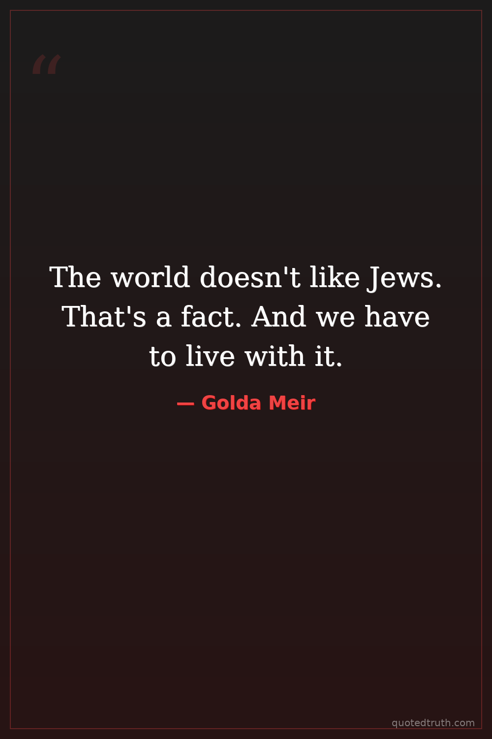 The world doesn't like Jews. That's a fact. And we have to live with it.