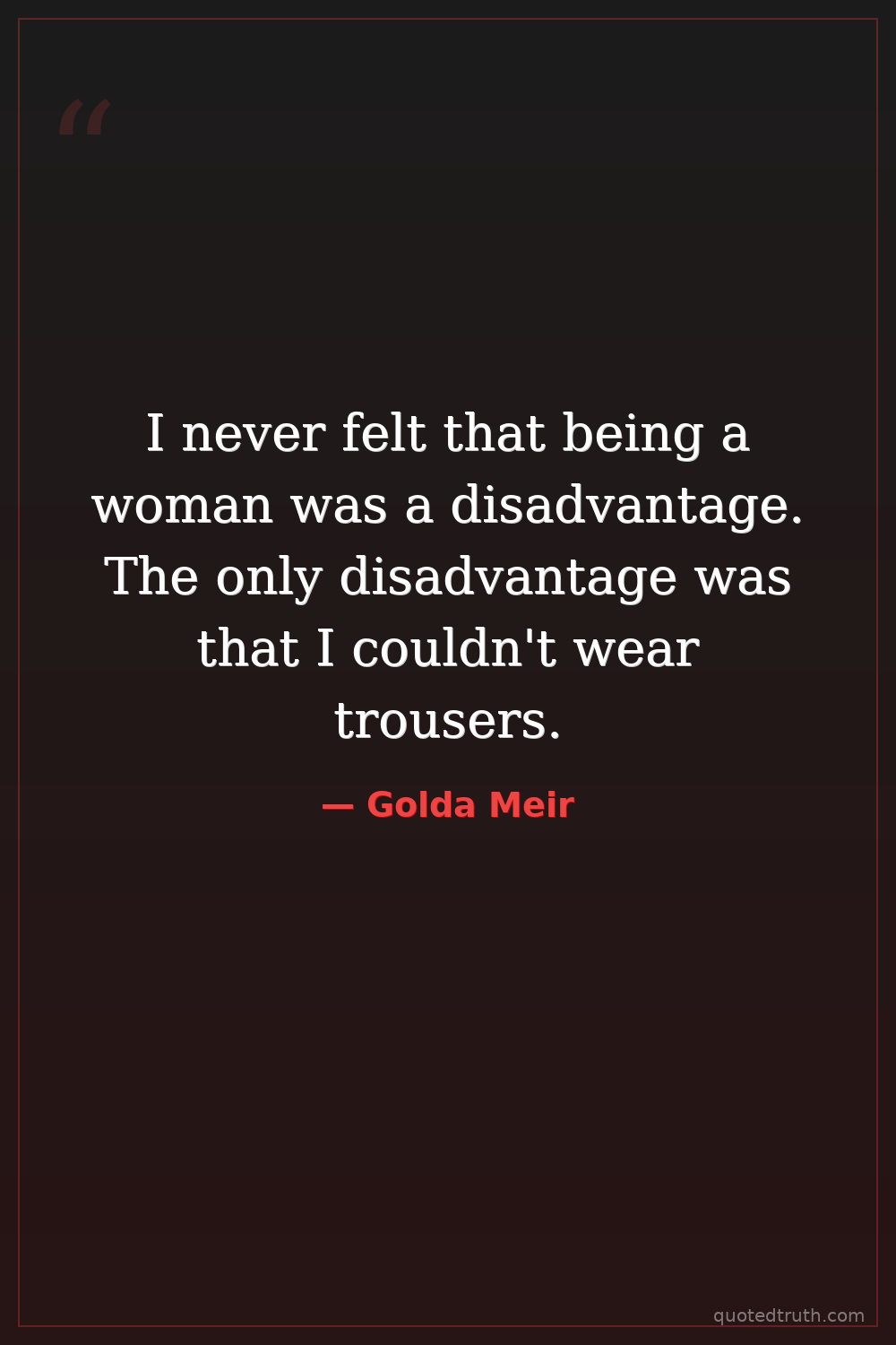 I never felt that being a woman was a disadvantage. The only disadvantage was that I couldn't wear trousers.