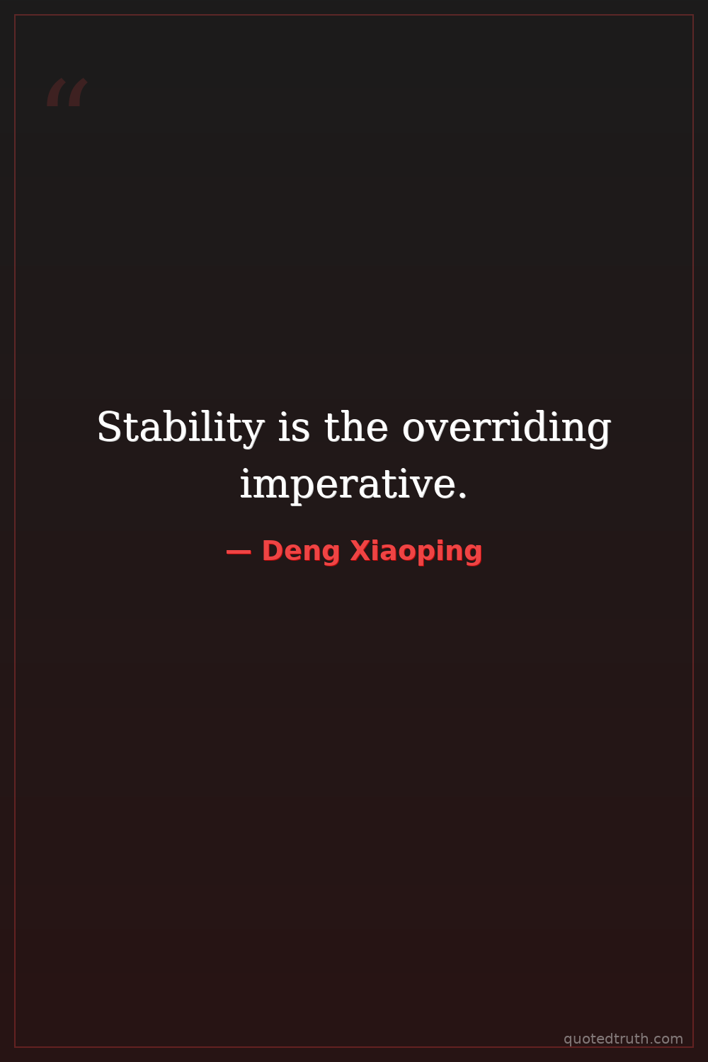 Stability is the overriding imperative.