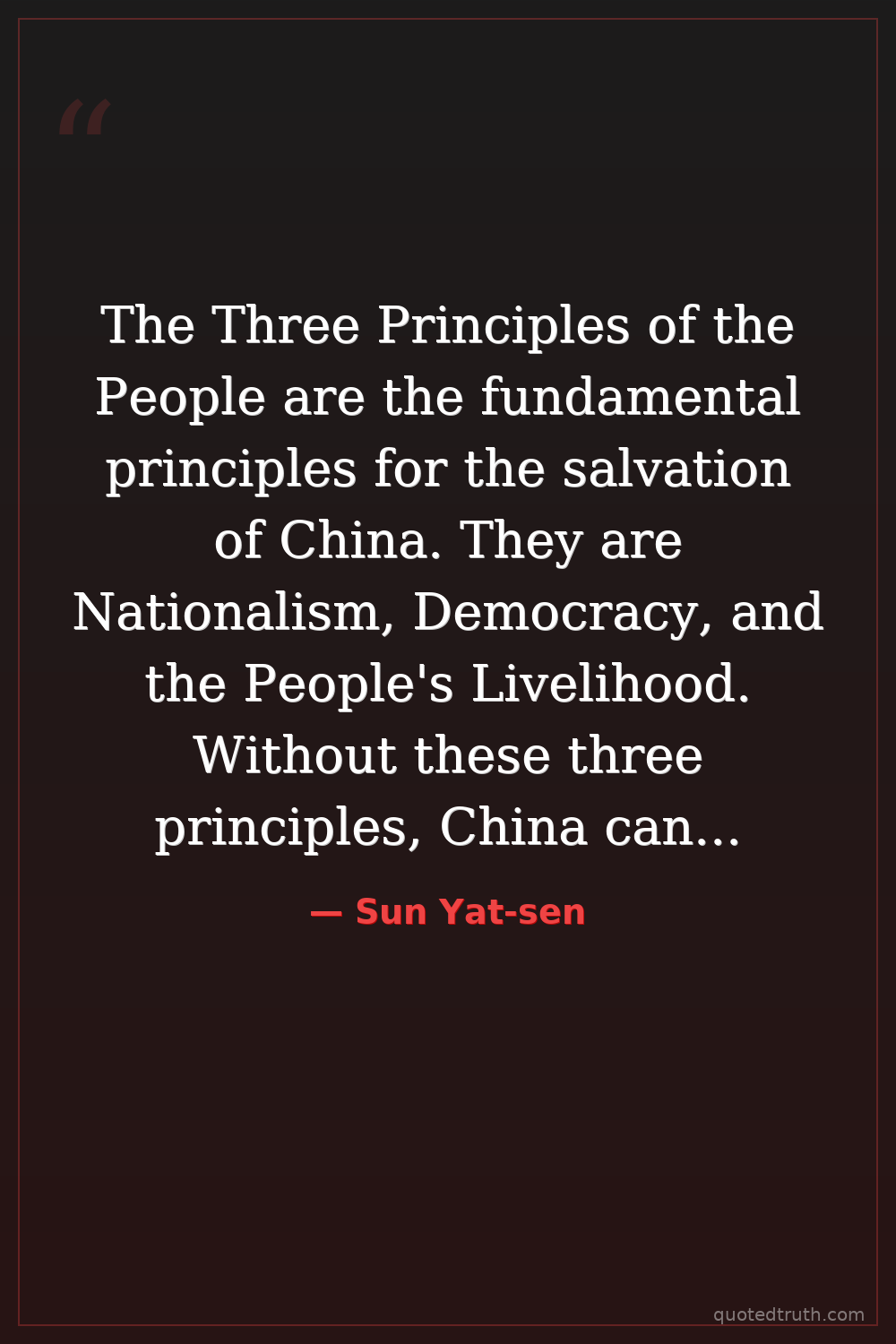 The Three Principles of the People are the fundamental principles for the salvation of China. They are Nationalism, Democracy, and the People's Livelihood. Without these three principles, China cannot be saved.