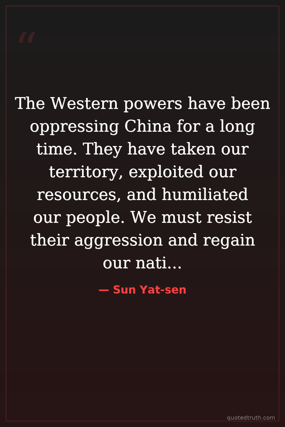 The Western powers have been oppressing China for a long time. They have taken our territory, exploited our resources, and humiliated our people. We must resist their aggression and regain our national independence.