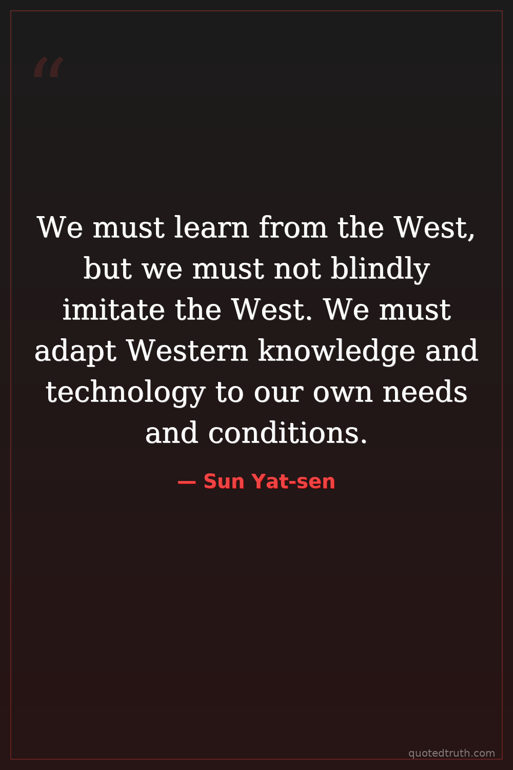 We must learn from the West, but we must not blindly imitate the West. We must adapt Western knowledge and technology to our own needs and conditions.