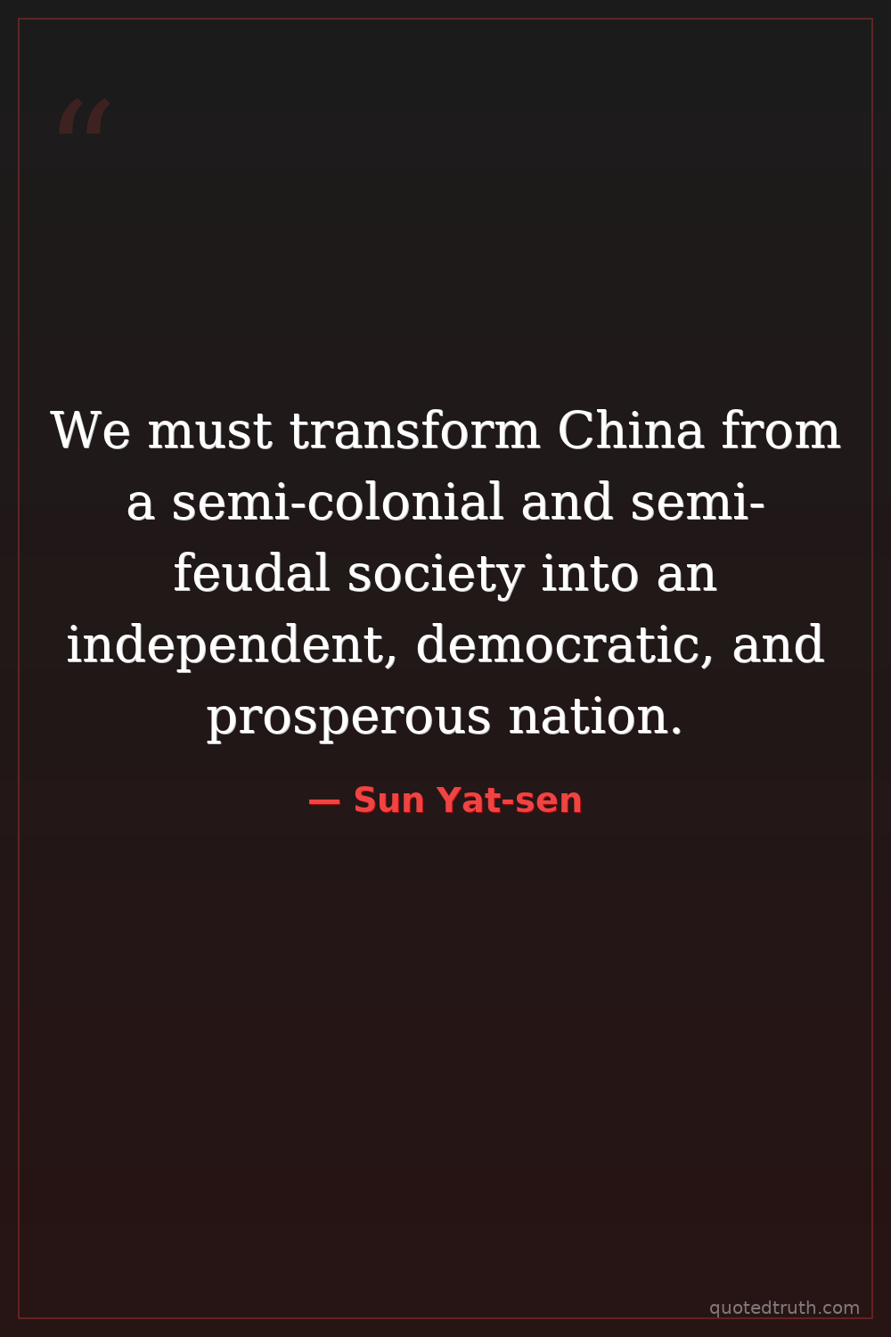 We must transform China from a semi-colonial and semi-feudal society into an independent, democratic, and prosperous nation.