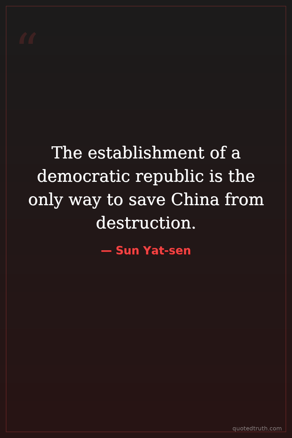 The establishment of a democratic republic is the only way to save China from destruction.