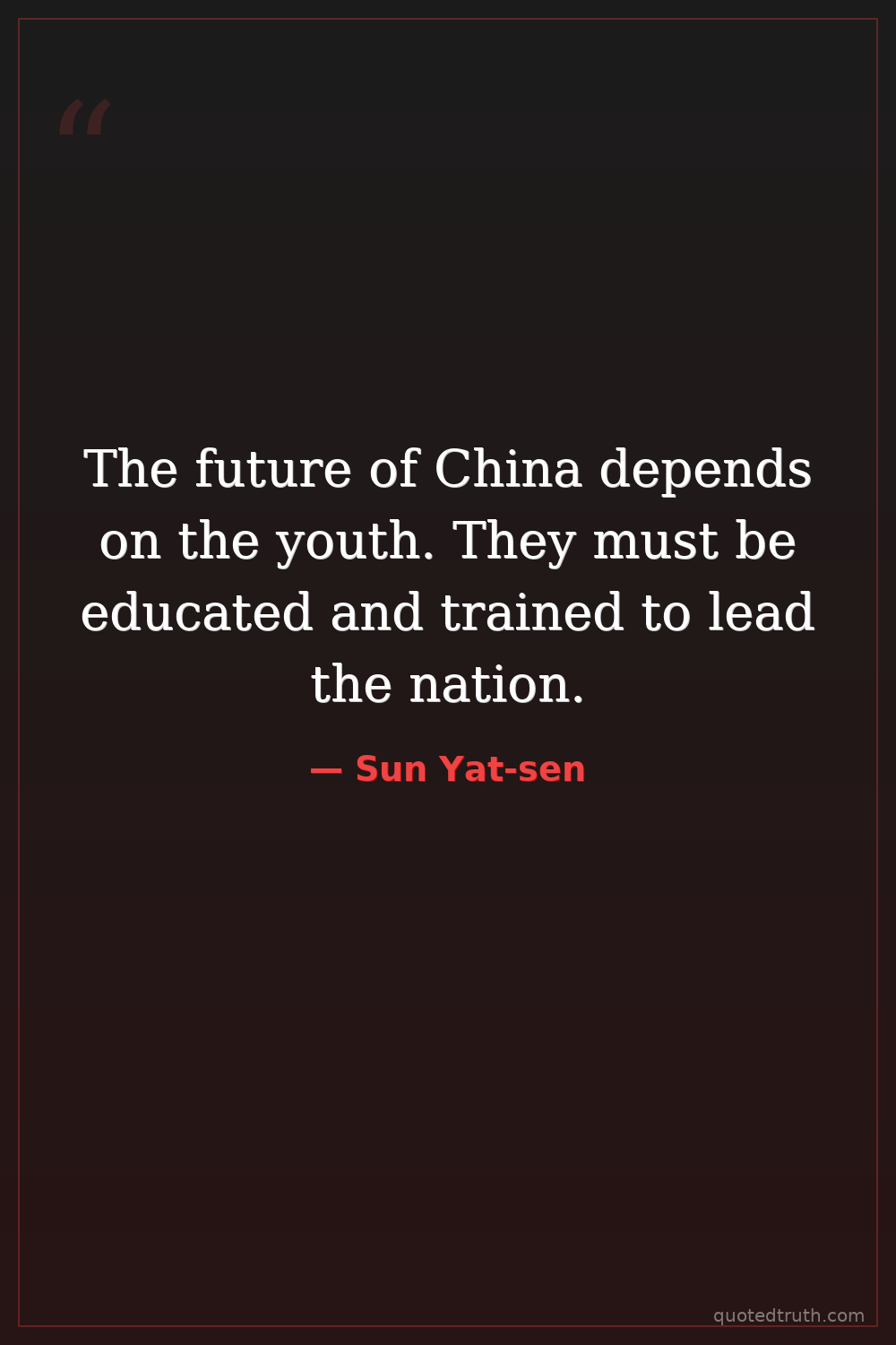The future of China depends on the youth. They must be educated and trained to lead the nation.