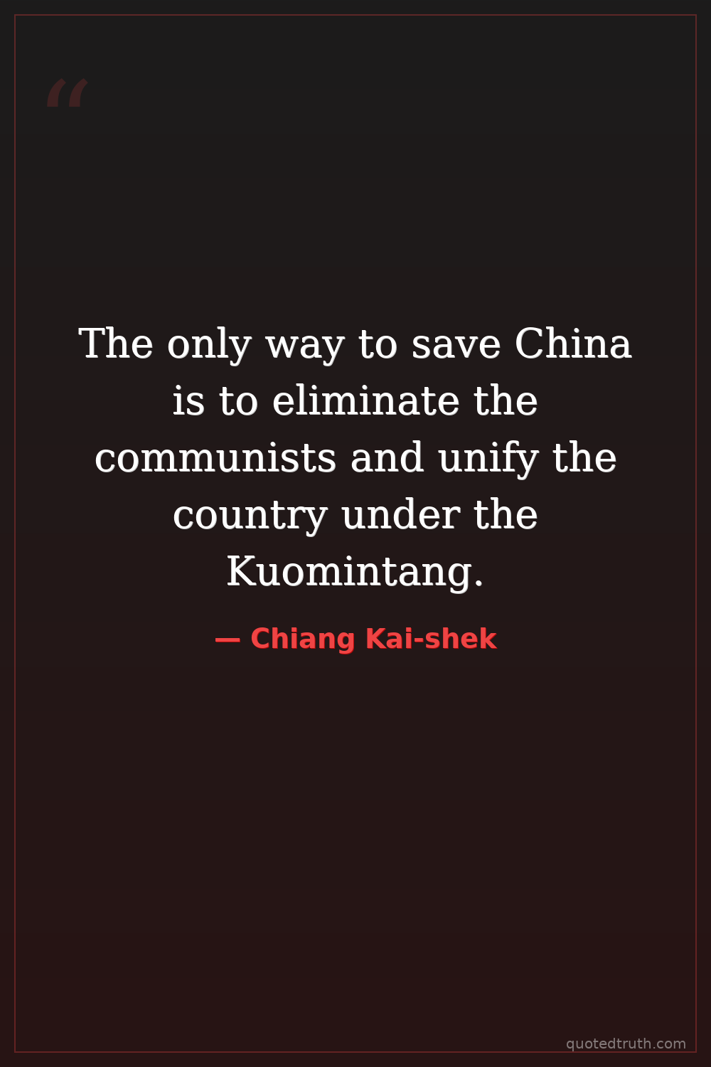 The only way to save China is to eliminate the communists and unify the country under the Kuomintang.