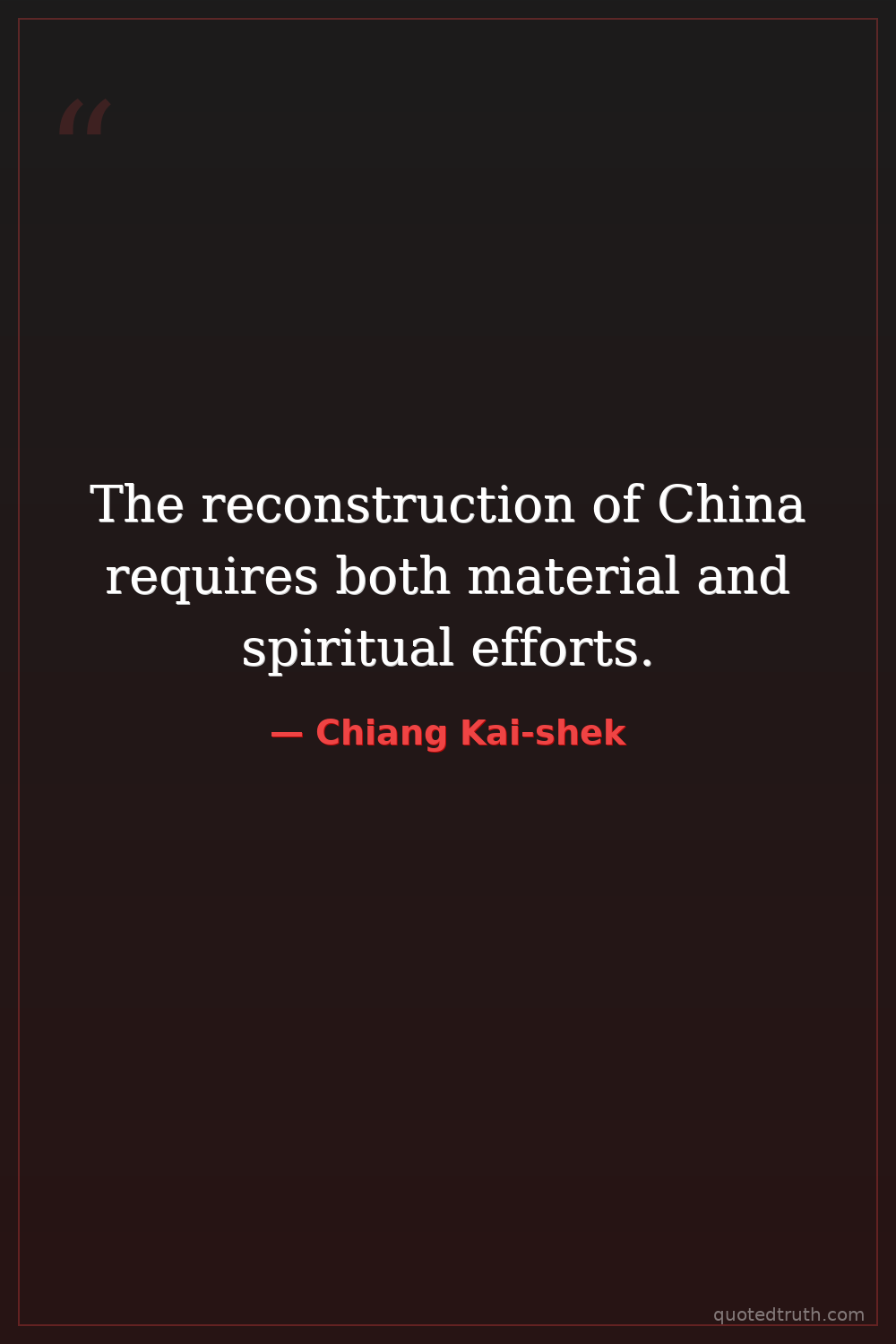 The reconstruction of China requires both material and spiritual efforts.