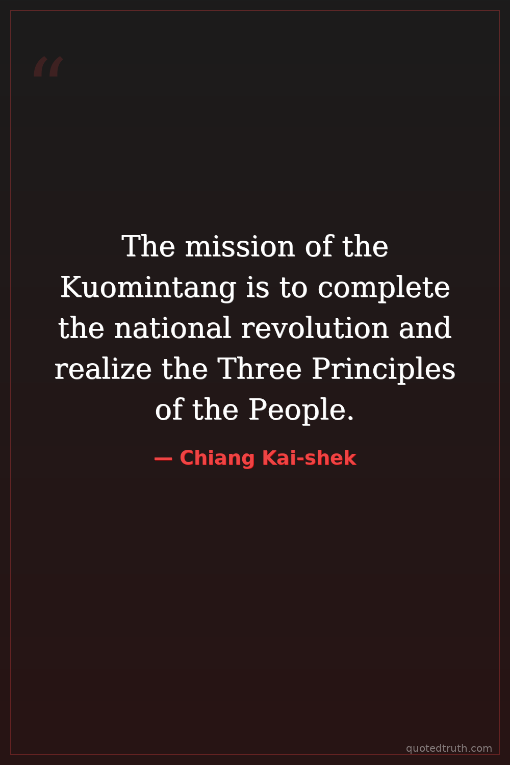 The mission of the Kuomintang is to complete the national revolution and realize the Three Principles of the People.