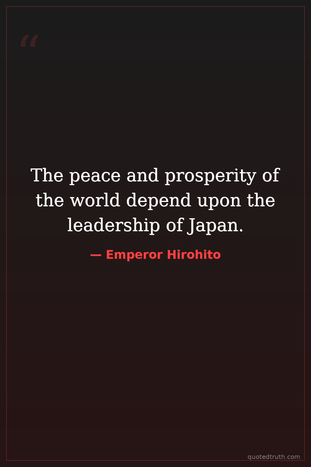 The peace and prosperity of the world depend upon the leadership of Japan.