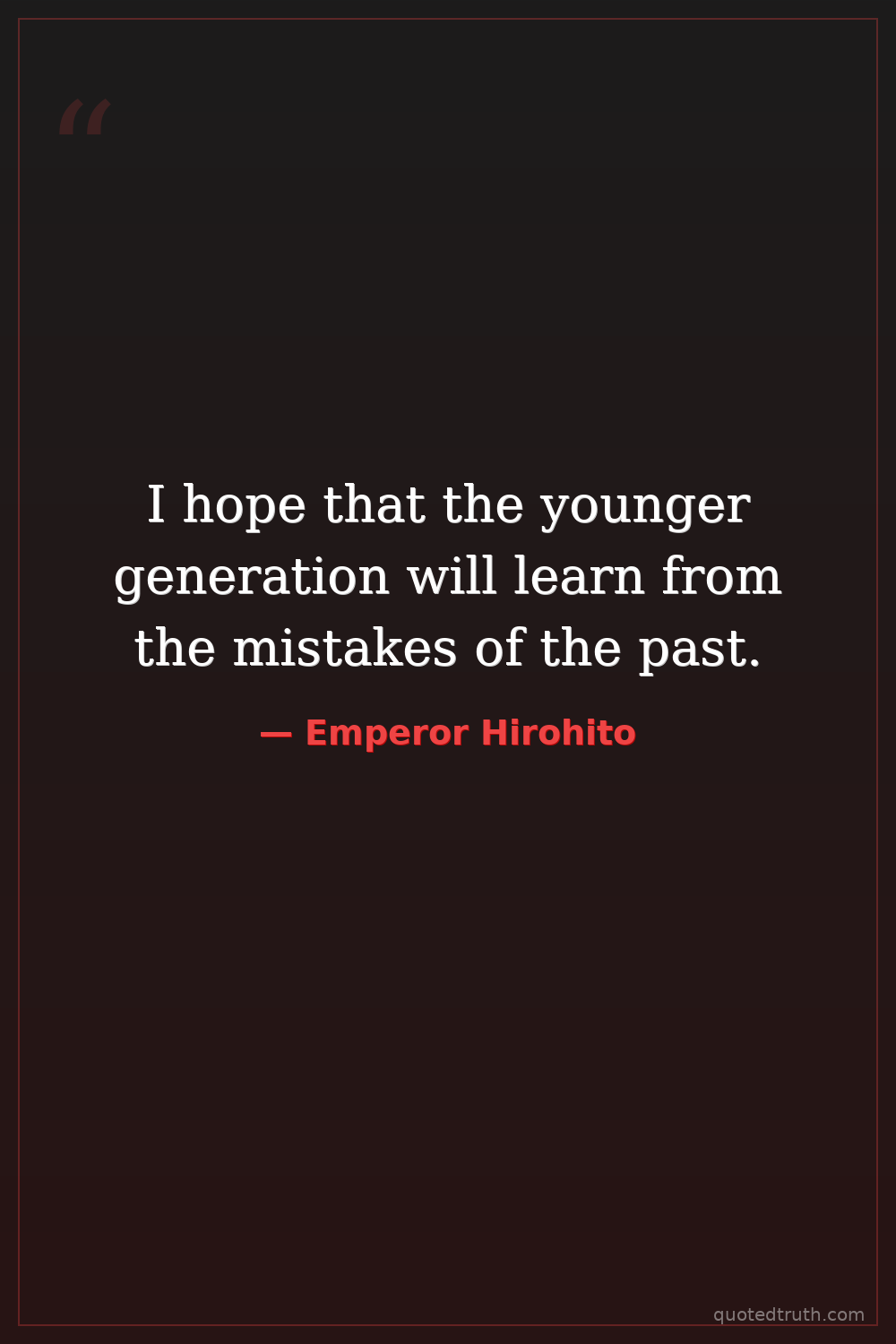 I hope that the younger generation will learn from the mistakes of the past.