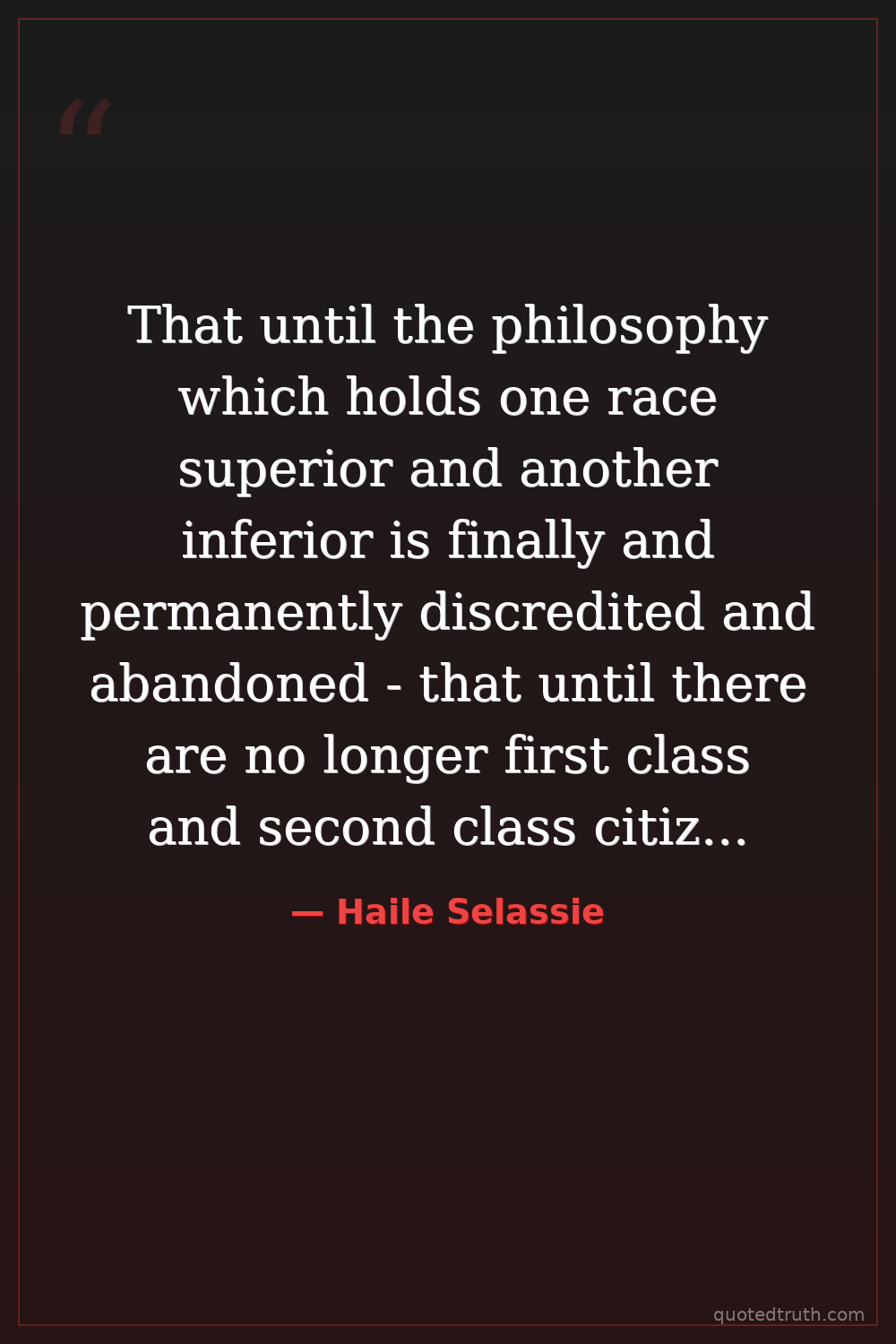 That until the philosophy which holds one race superior and another inferior is finally and permanently discredited and abandoned - that until there are no longer first class and second class citizens of any nation - that until the color of a man's skin is of no more significance than the color of his eyes - that until the basic human rights are equally guaranteed to all without regard to race - it's a war.