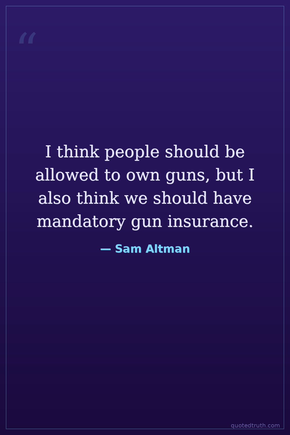 I think people should be allowed to own guns, but I also think we should have mandatory gun insurance.