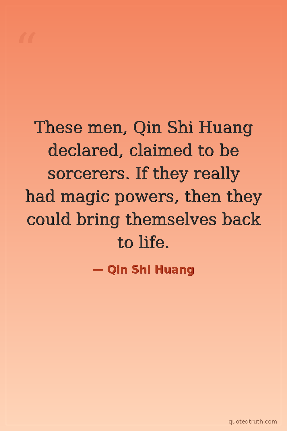 These men, Qin Shi Huang declared, claimed to be sorcerers. If they really had magic powers, then they could bring themselves back to life.