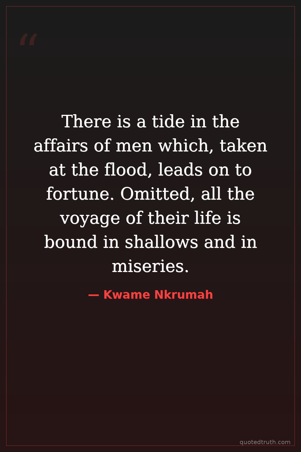 There is a tide in the affairs of men which, taken at the flood, leads on to fortune. Omitted, all the voyage of their life is bound in shallows and in miseries.