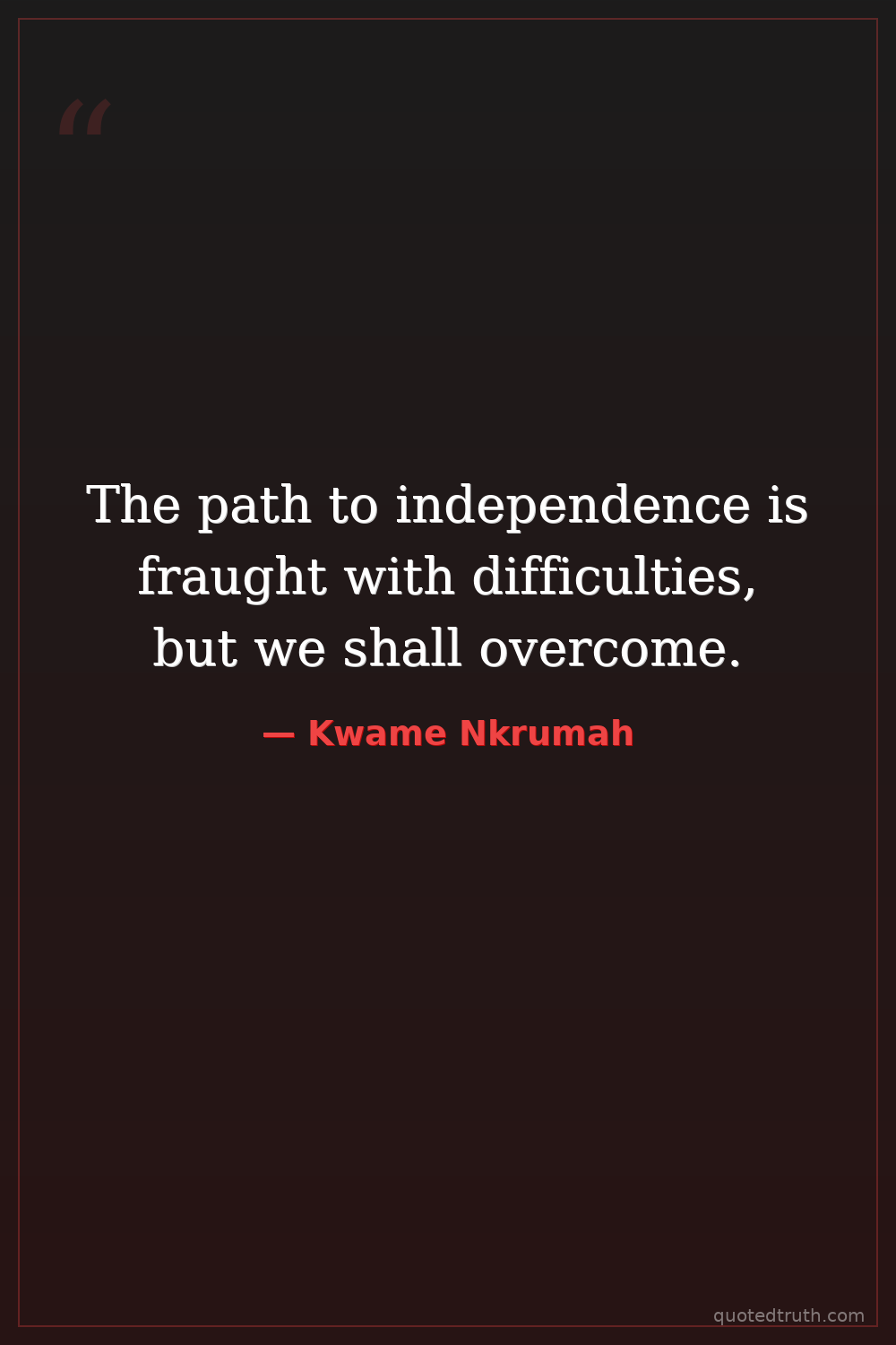 The path to independence is fraught with difficulties, but we shall overcome.