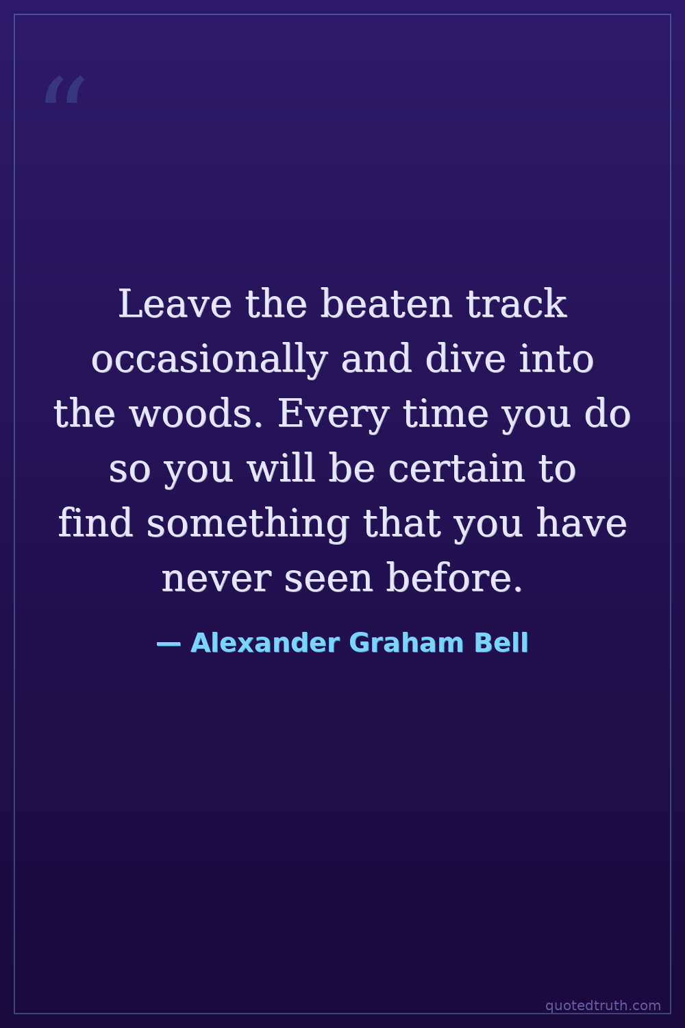 Leave the beaten track occasionally and dive into the woods. Every time you do so you will be certain to find something that you have never seen before.