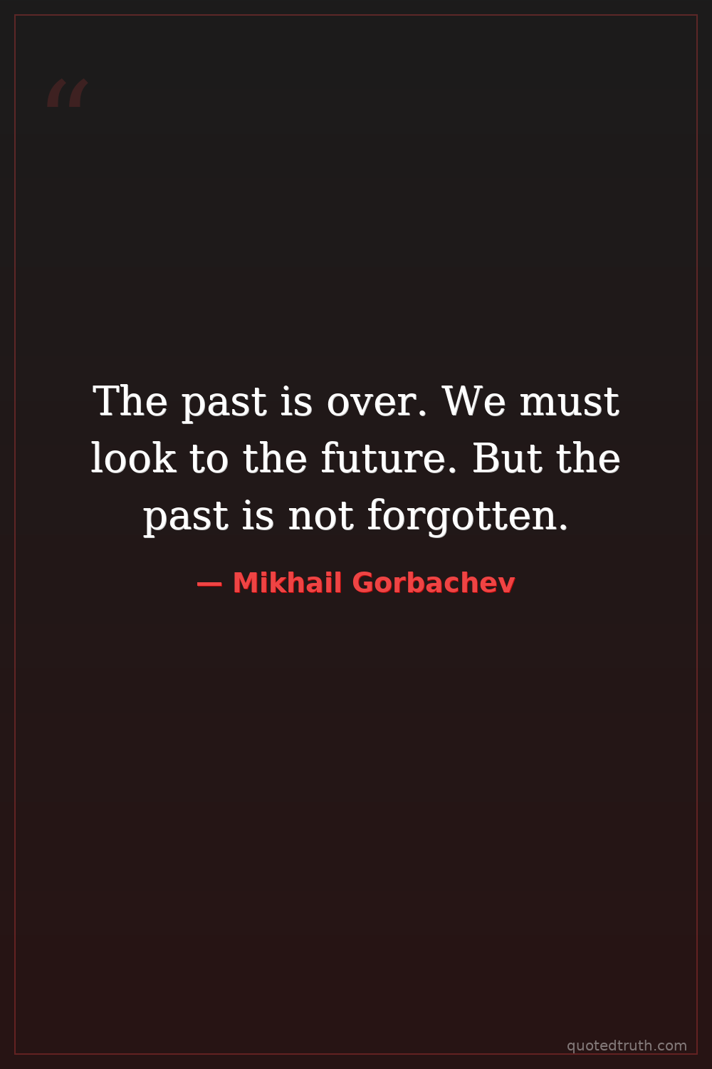 The past is over. We must look to the future. But the past is not forgotten.