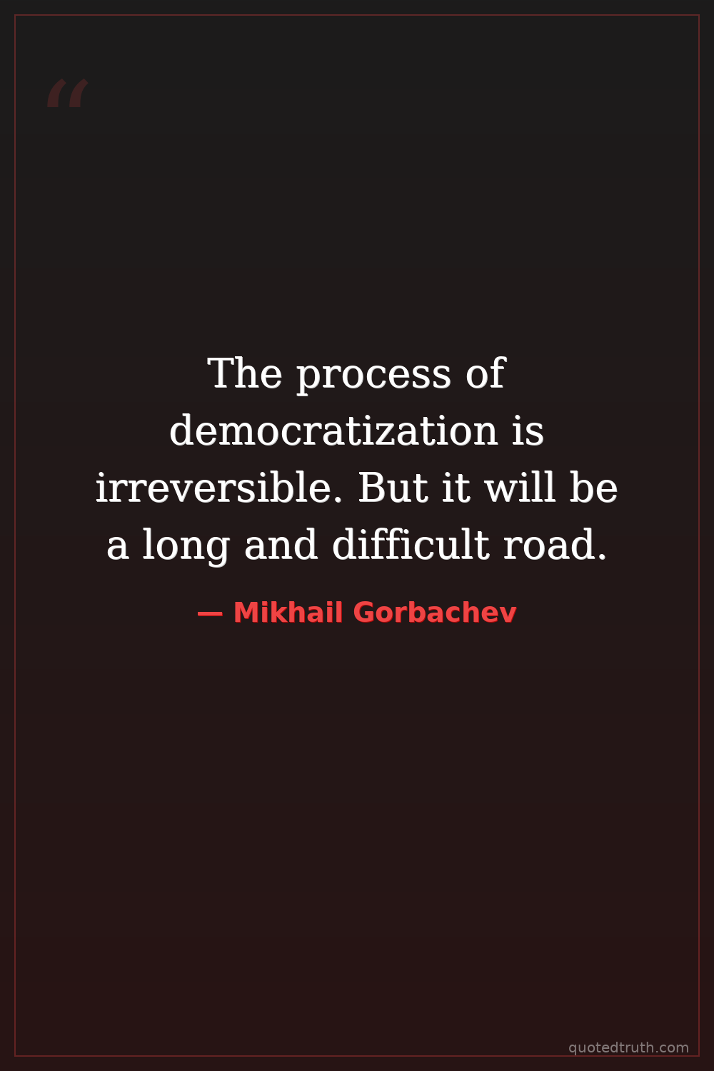 The process of democratization is irreversible. But it will be a long and difficult road.