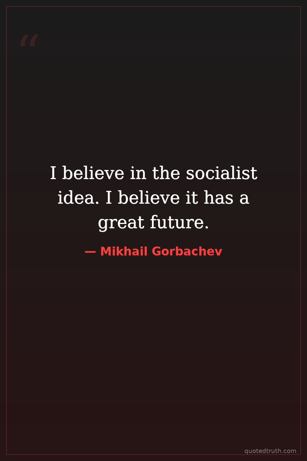 I believe in the socialist idea. I believe it has a great future.