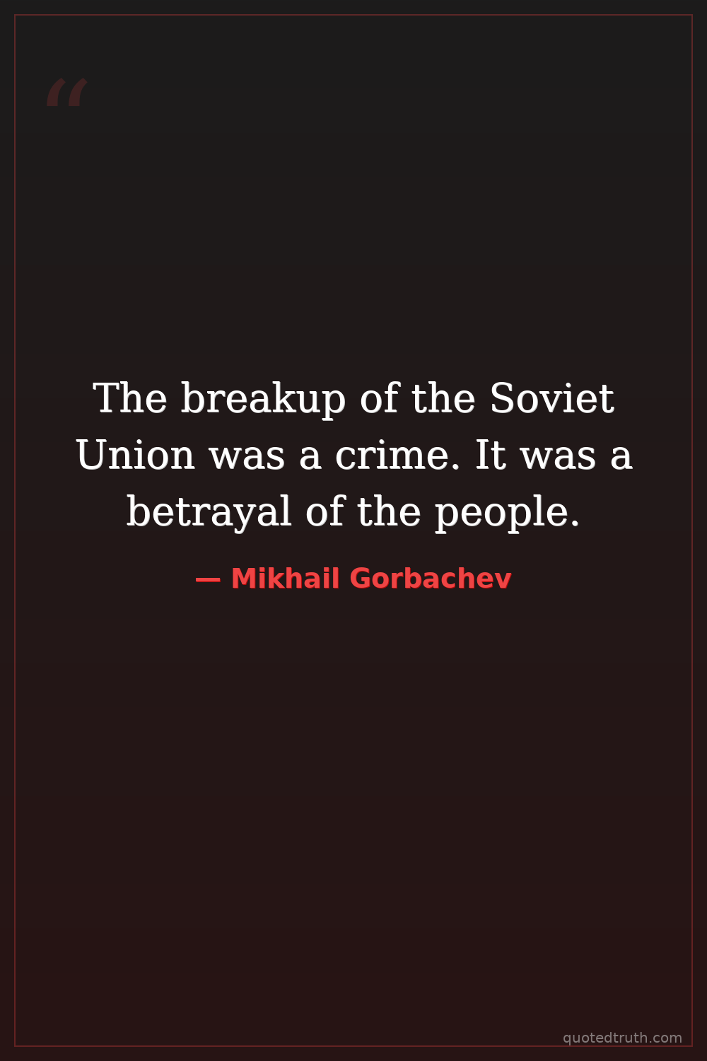 The breakup of the Soviet Union was a crime. It was a betrayal of the people.
