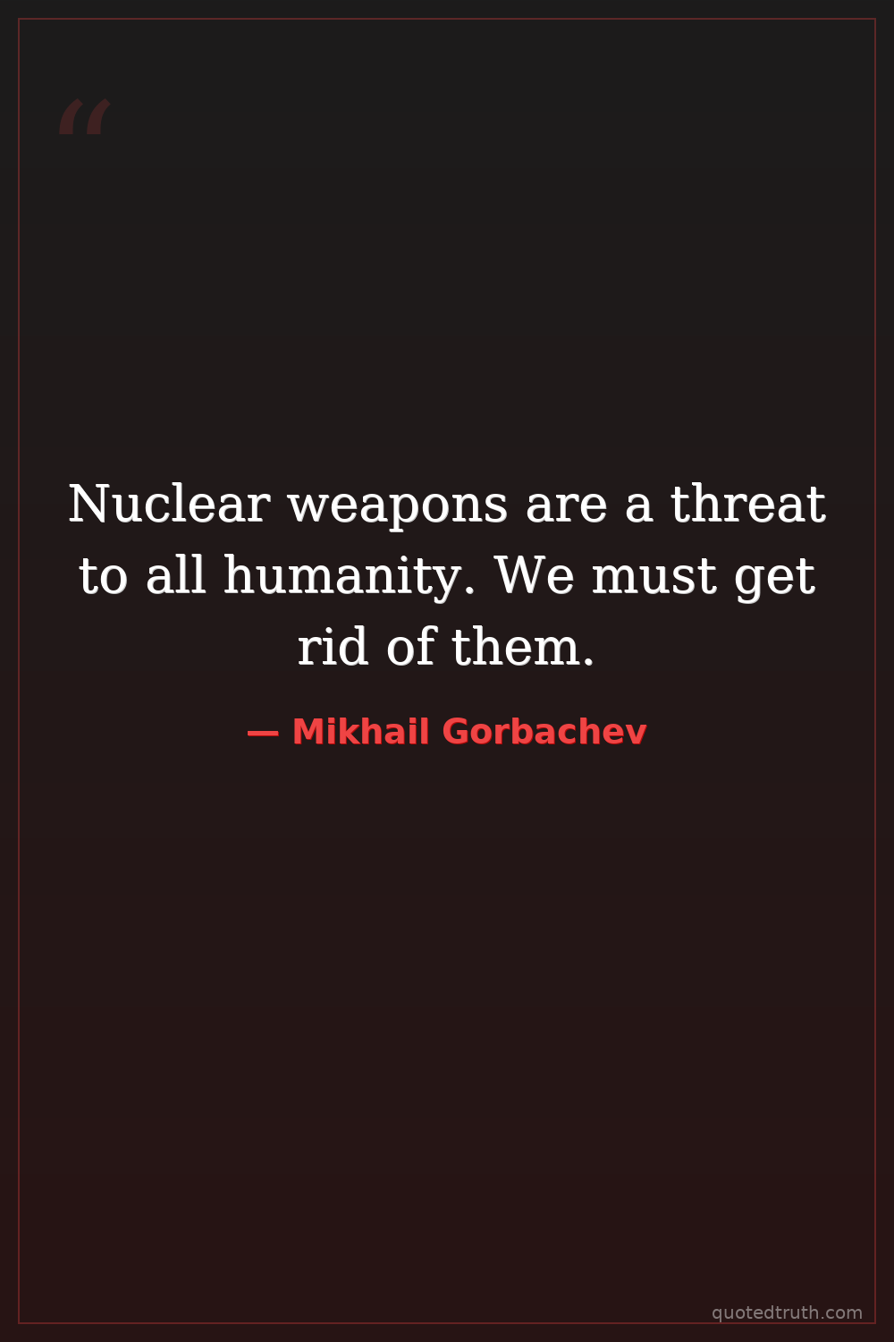 Nuclear weapons are a threat to all humanity. We must get rid of them.