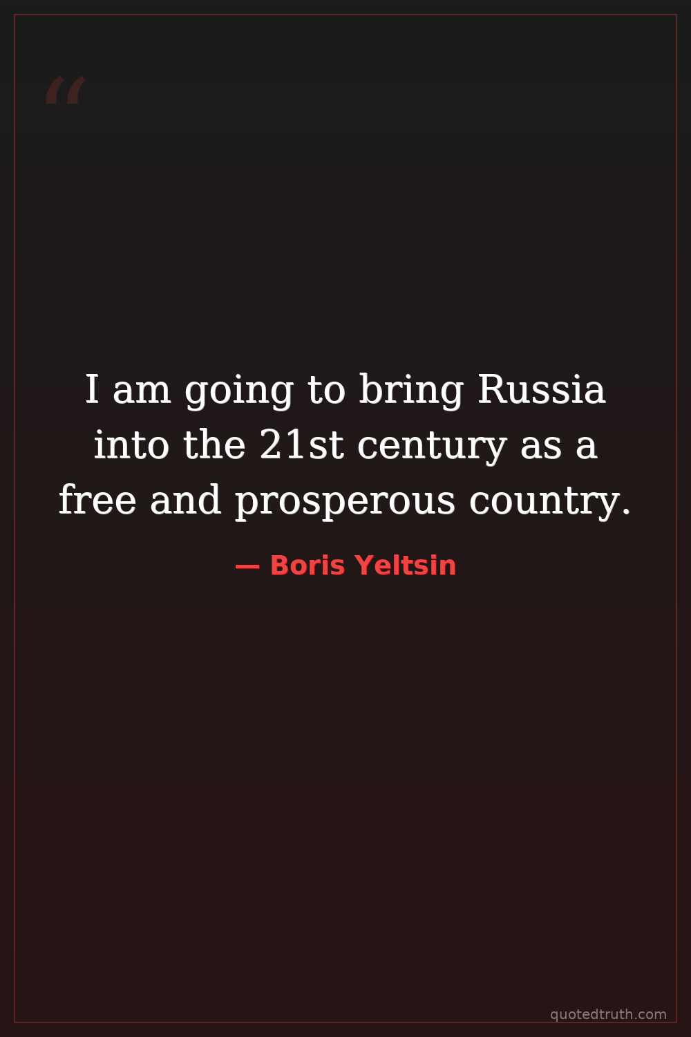 I am going to bring Russia into the 21st century as a free and prosperous country.