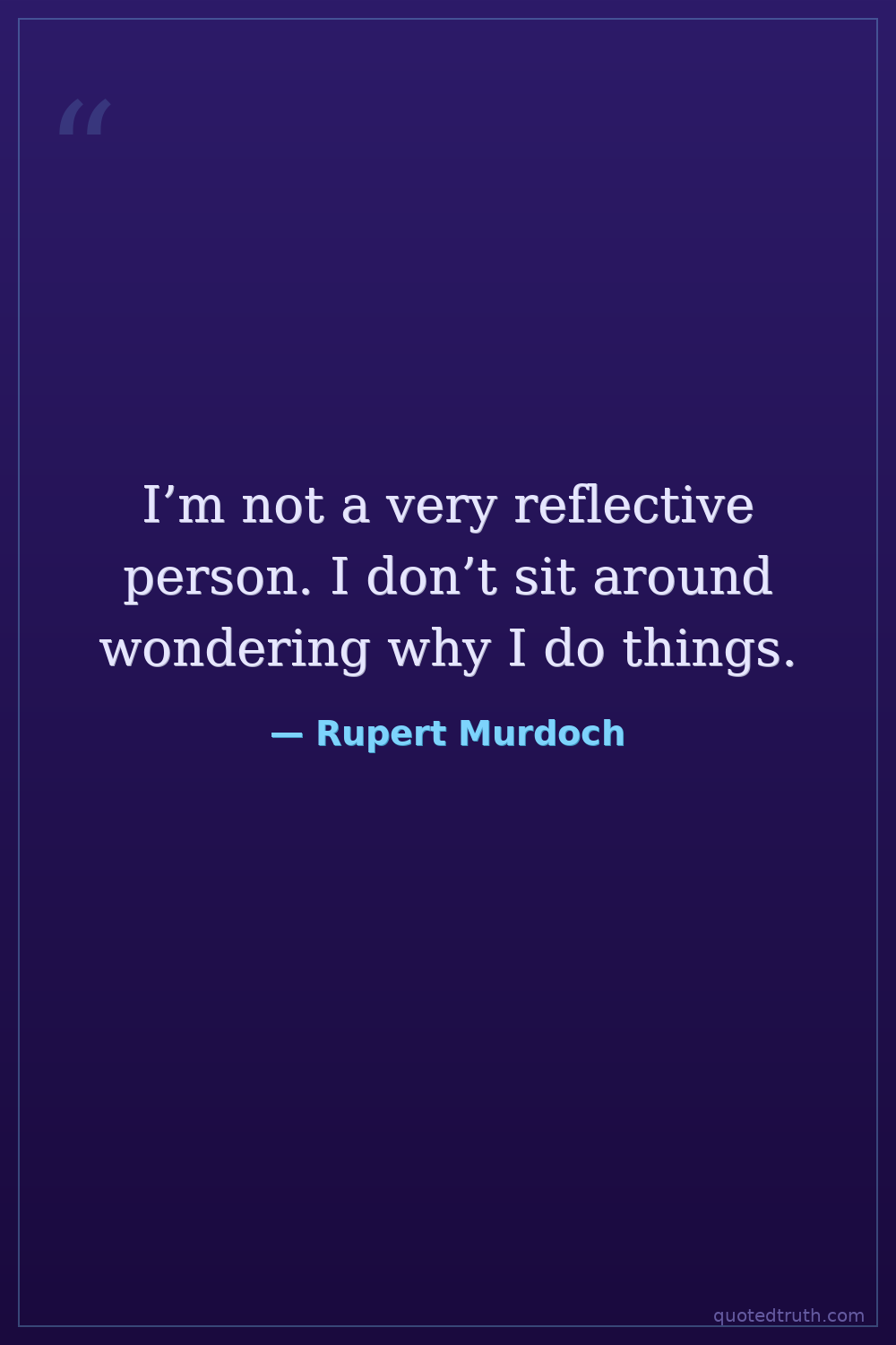 I’m not a very reflective person. I don’t sit around wondering why I do things.