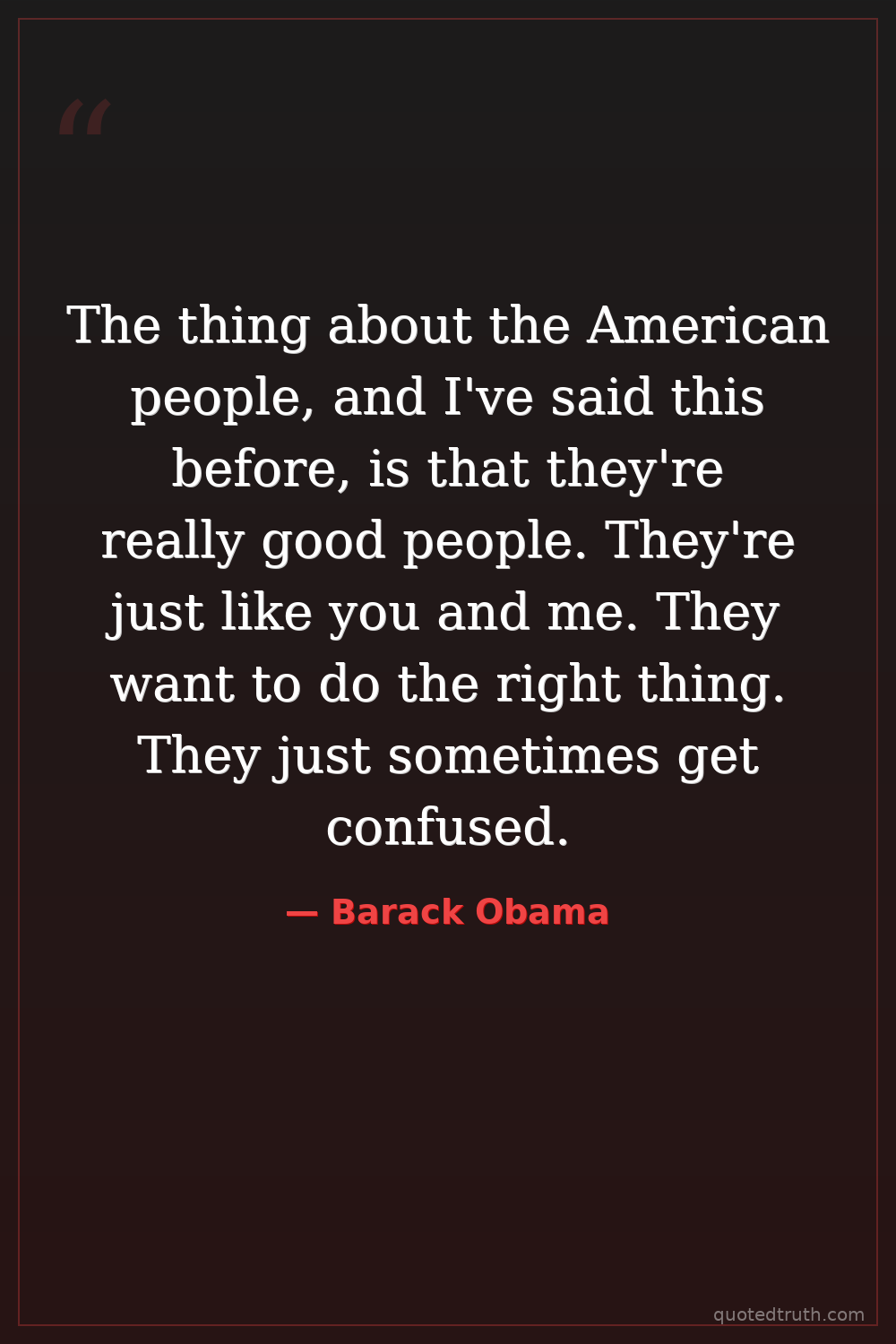 The thing about the American people, and I've said this before, is that they're really good people. They're just like you and me. They want to do the right thing. They just sometimes get confused.