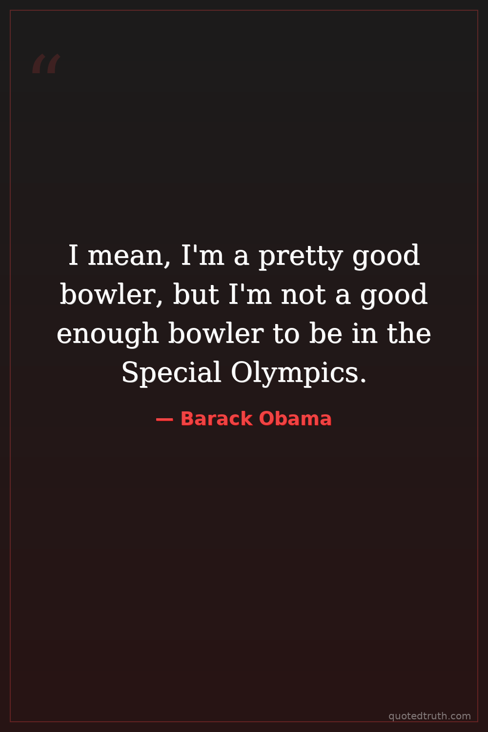 I mean, I'm a pretty good bowler, but I'm not a good enough bowler to be in the Special Olympics.