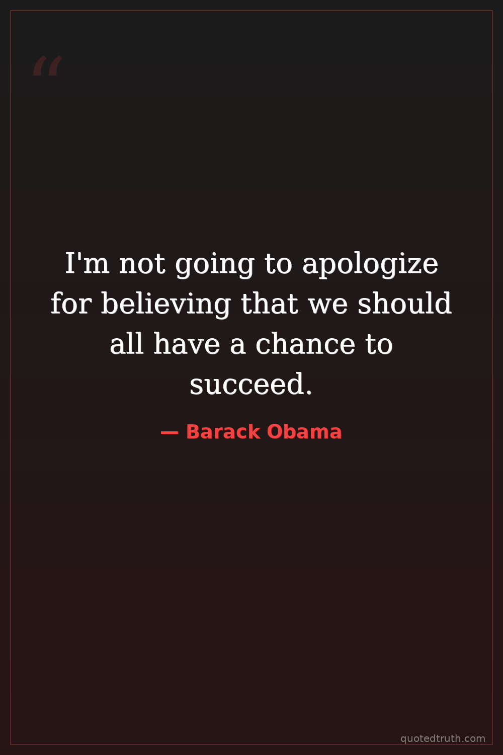 I'm not going to apologize for believing that we should all have a chance to succeed.