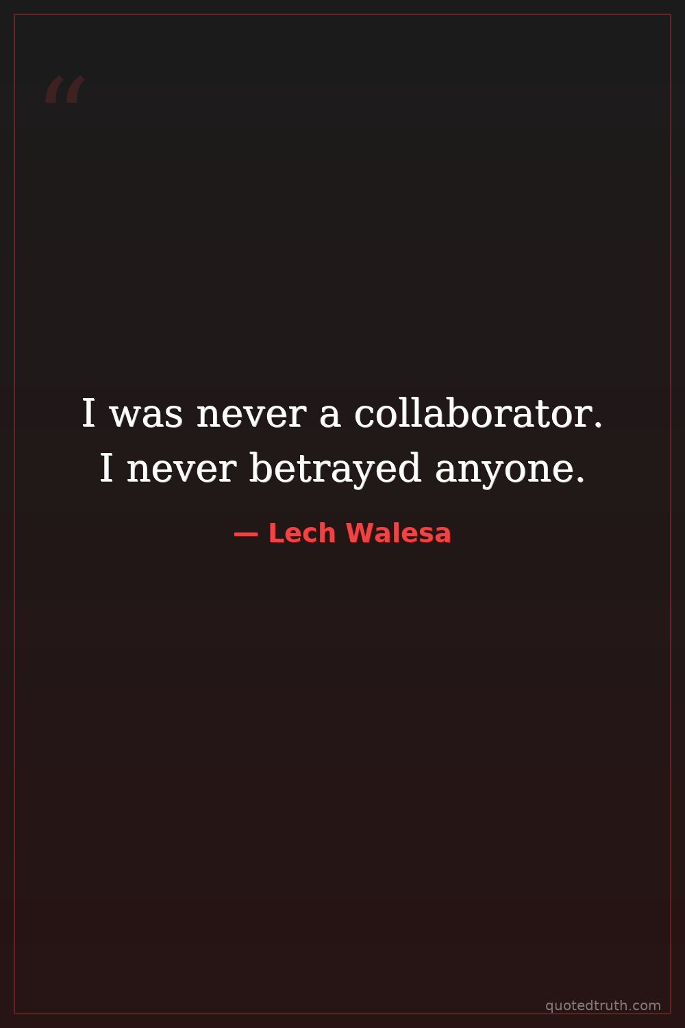 I was never a collaborator. I never betrayed anyone.