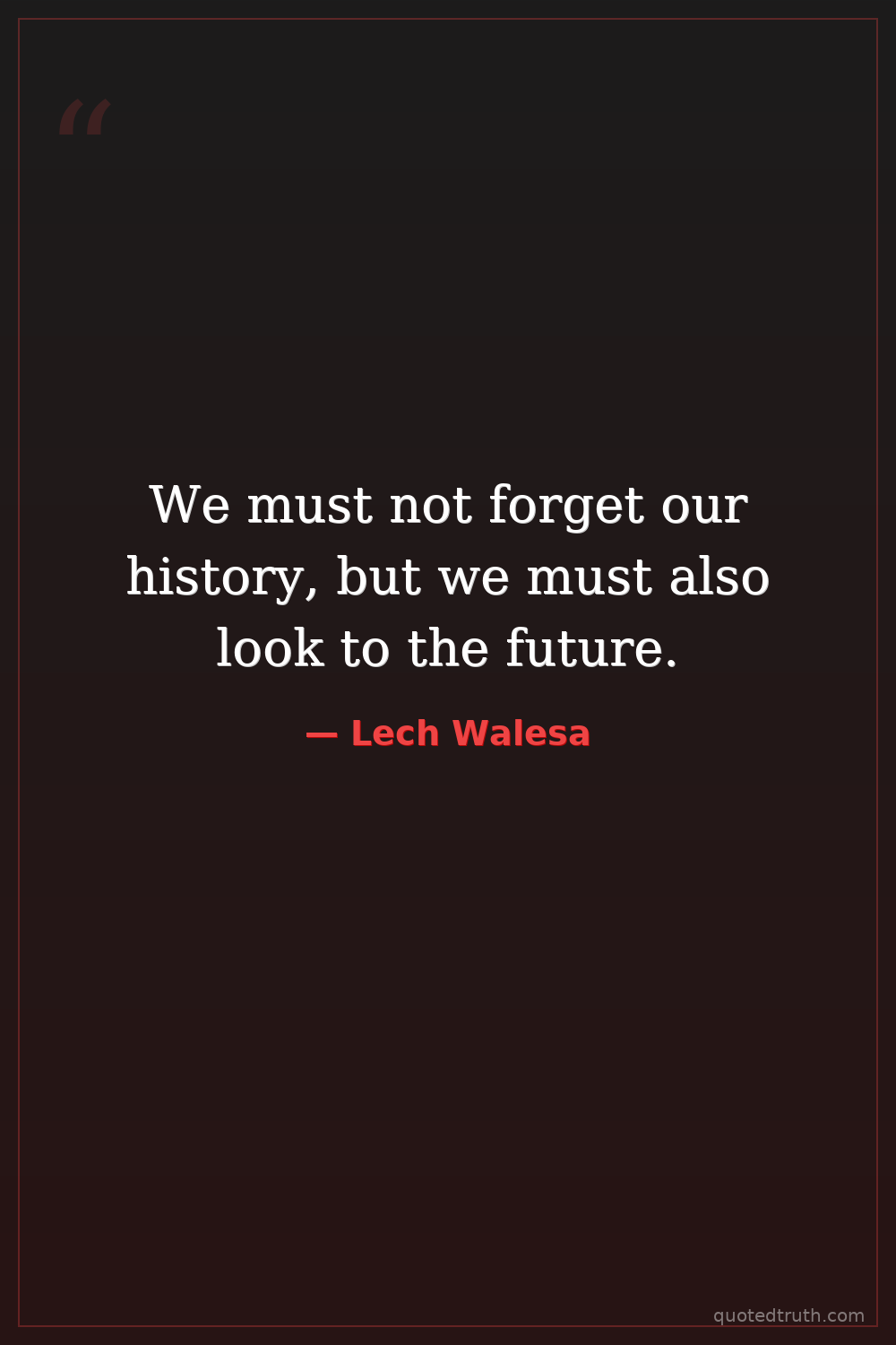 We must not forget our history, but we must also look to the future.