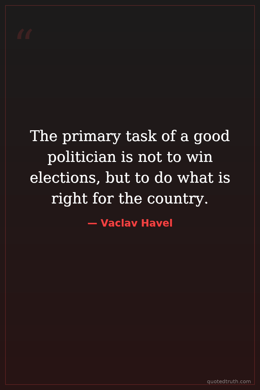 The primary task of a good politician is not to win elections, but to do what is right for the country.