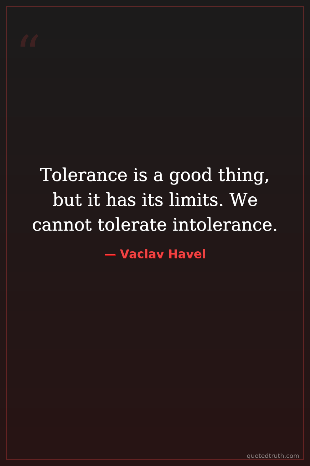 Tolerance is a good thing, but it has its limits. We cannot tolerate intolerance.