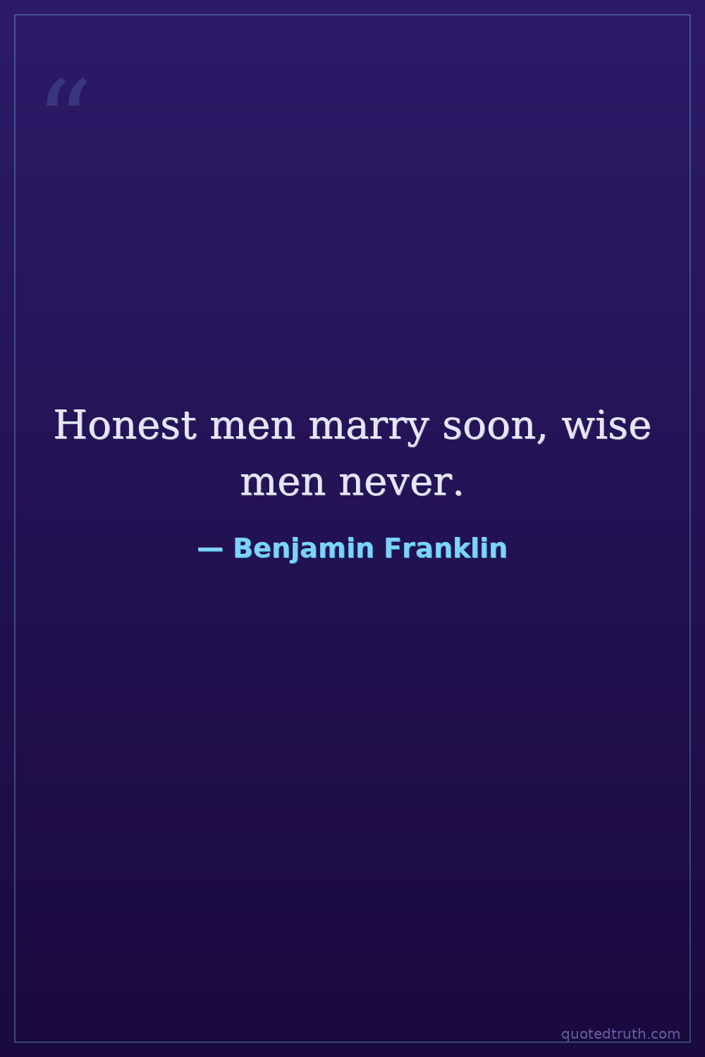 Honest men marry soon, wise men never.