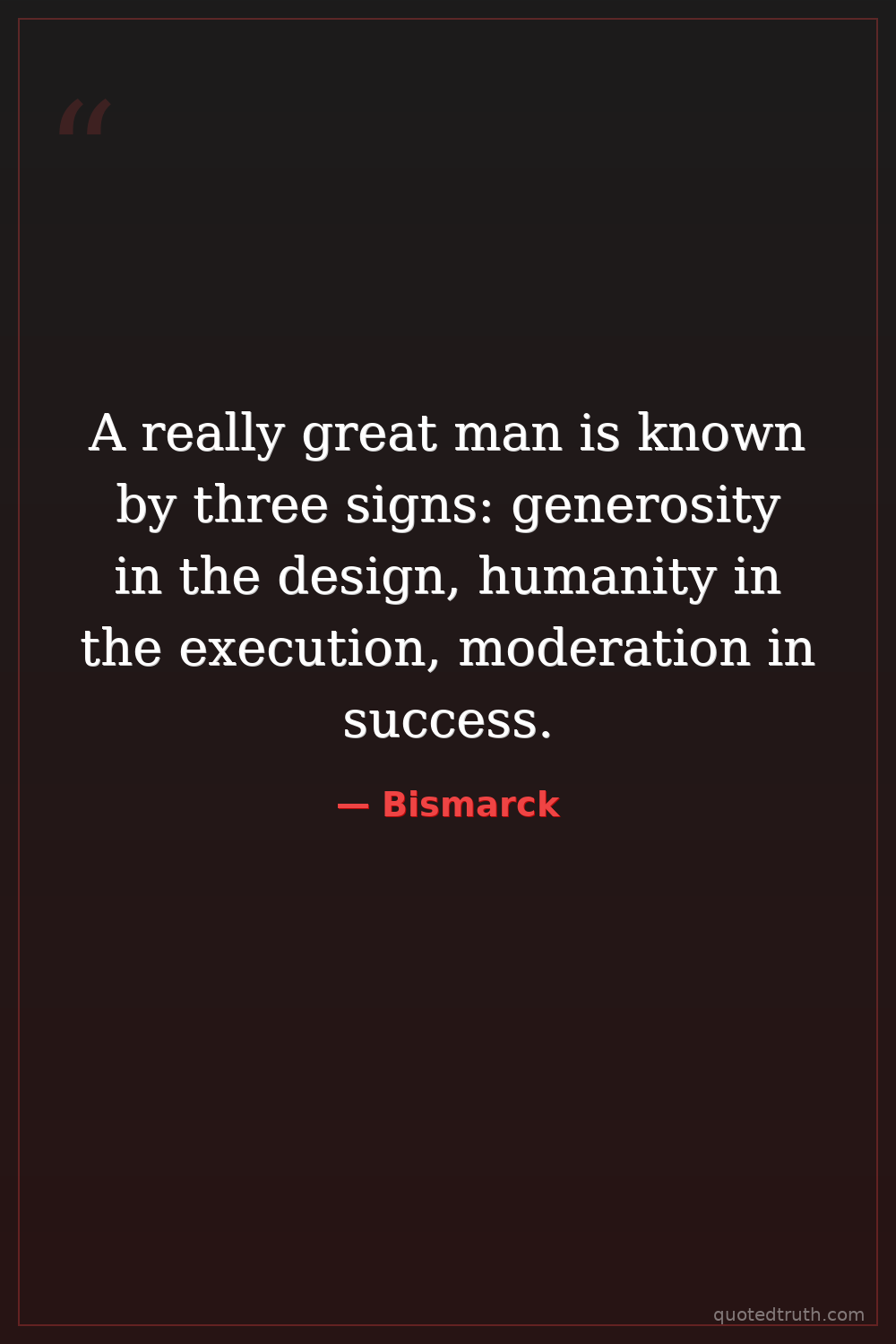 A really great man is known by three signs: generosity in the design, humanity in the execution, moderation in success.
