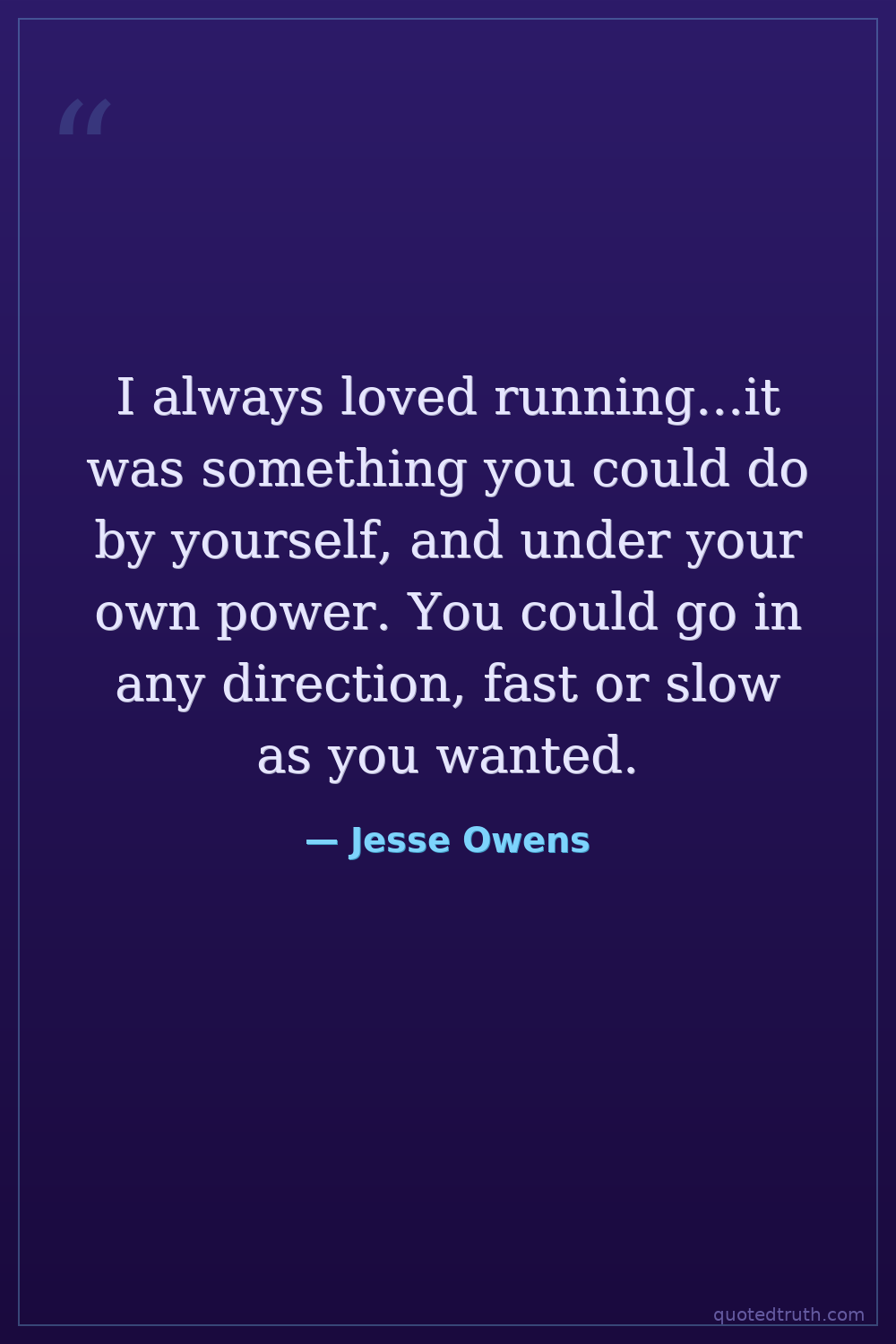 I always loved running...it was something you could do by yourself, and under your own power. You could go in any direction, fast or slow as you wanted.