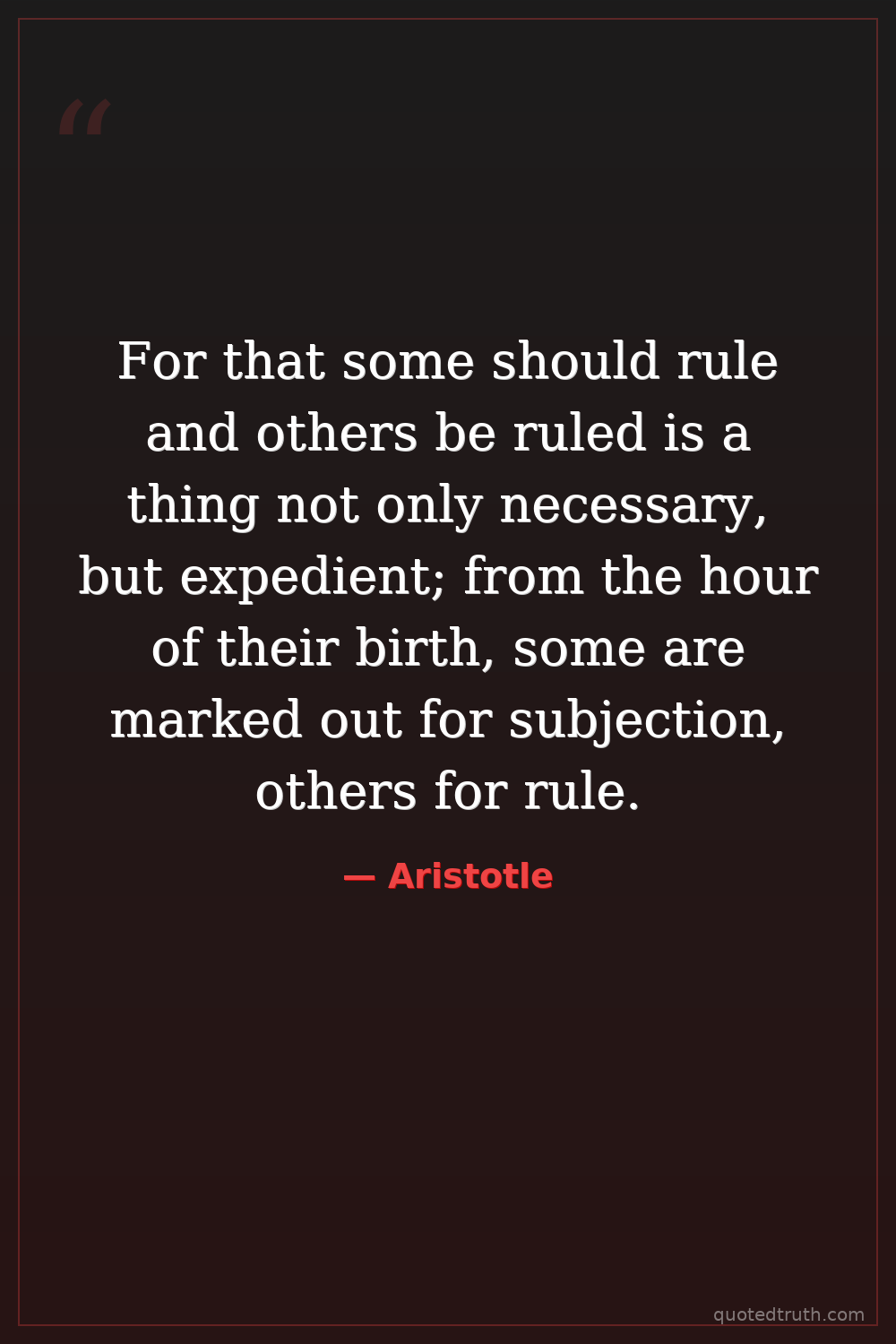 For that some should rule and others be ruled is a thing not only necessary, but expedient; from the hour of their birth, some are marked out for subjection, others for rule.