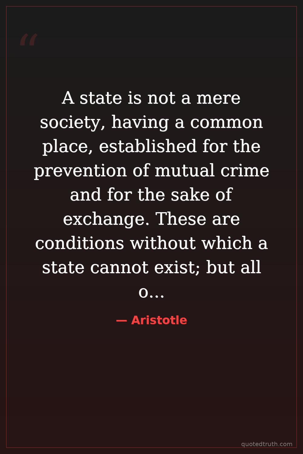 A state is not a mere society, having a common place, established for the prevention of mutual crime and for the sake of exchange. These are conditions without which a state cannot exist; but all of them together do not constitute a state.