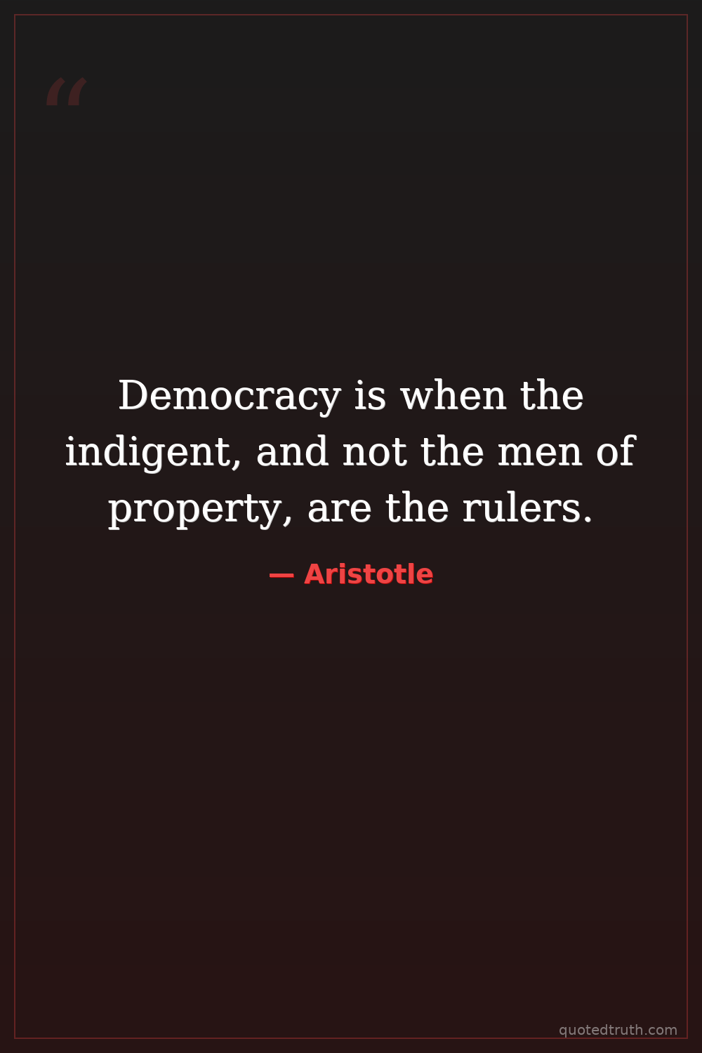 Democracy is when the indigent, and not the men of property, are the rulers.