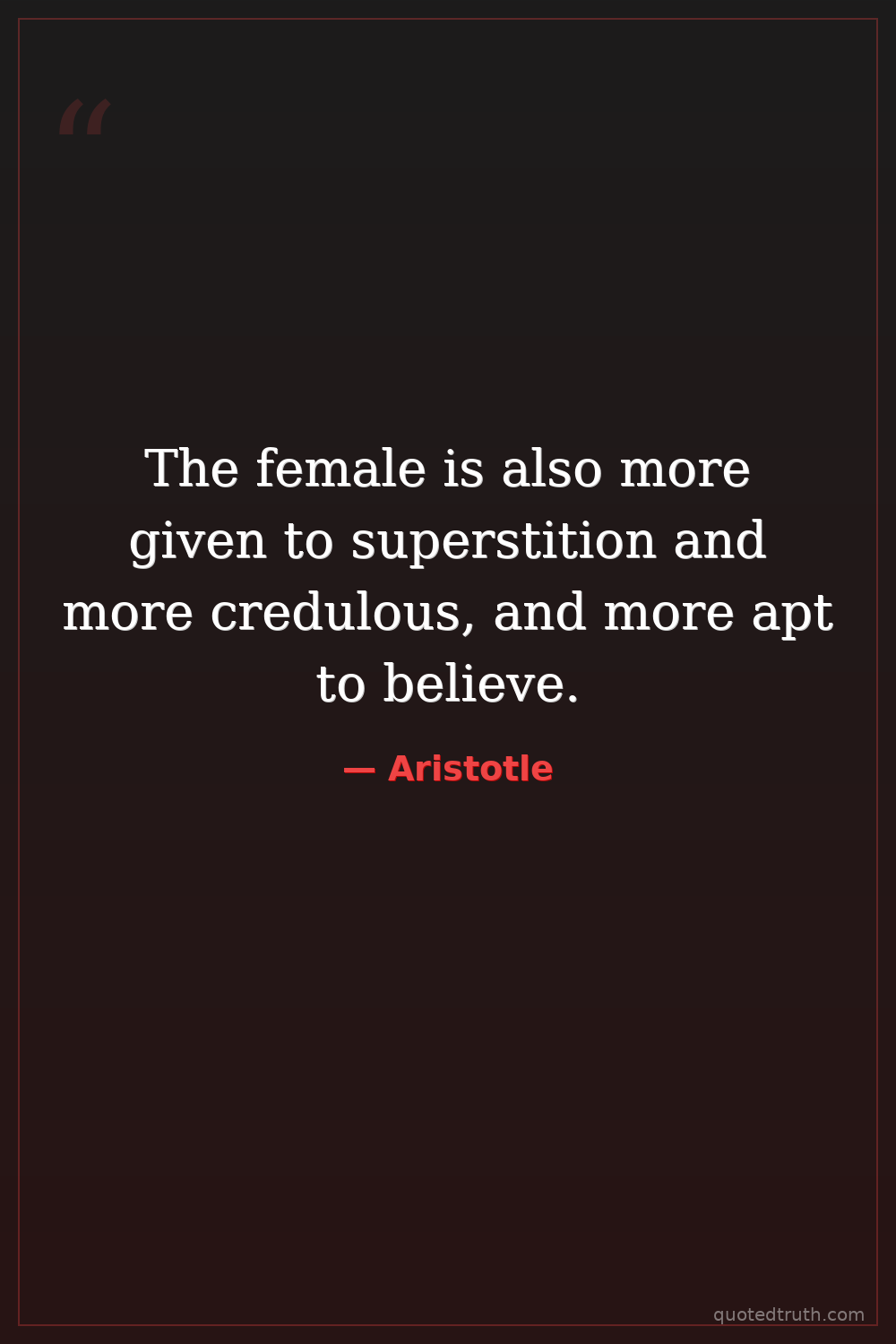 The female is also more given to superstition and more credulous, and more apt to believe.