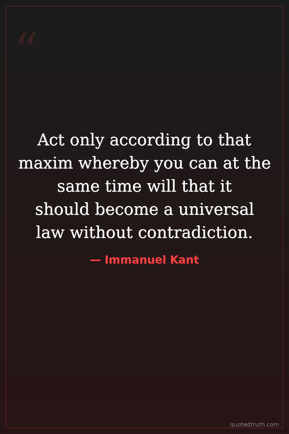 Act only according to that maxim whereby you can at the same time will that it should become a universal law without contradiction.