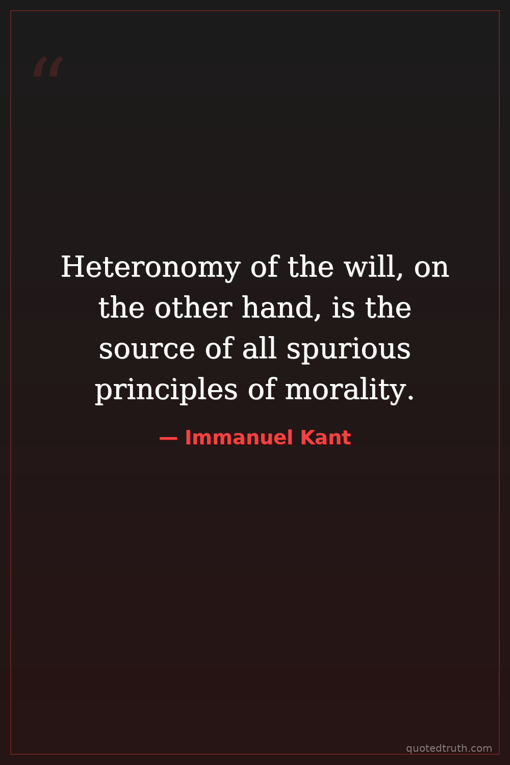 Heteronomy of the will, on the other hand, is the source of all spurious principles of morality.