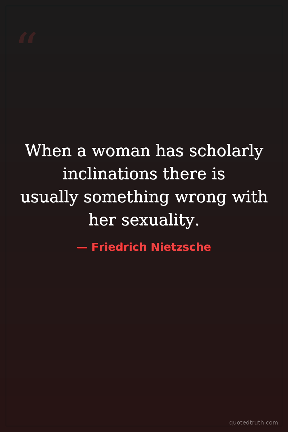 When a woman has scholarly inclinations there is usually something wrong with her sexuality.